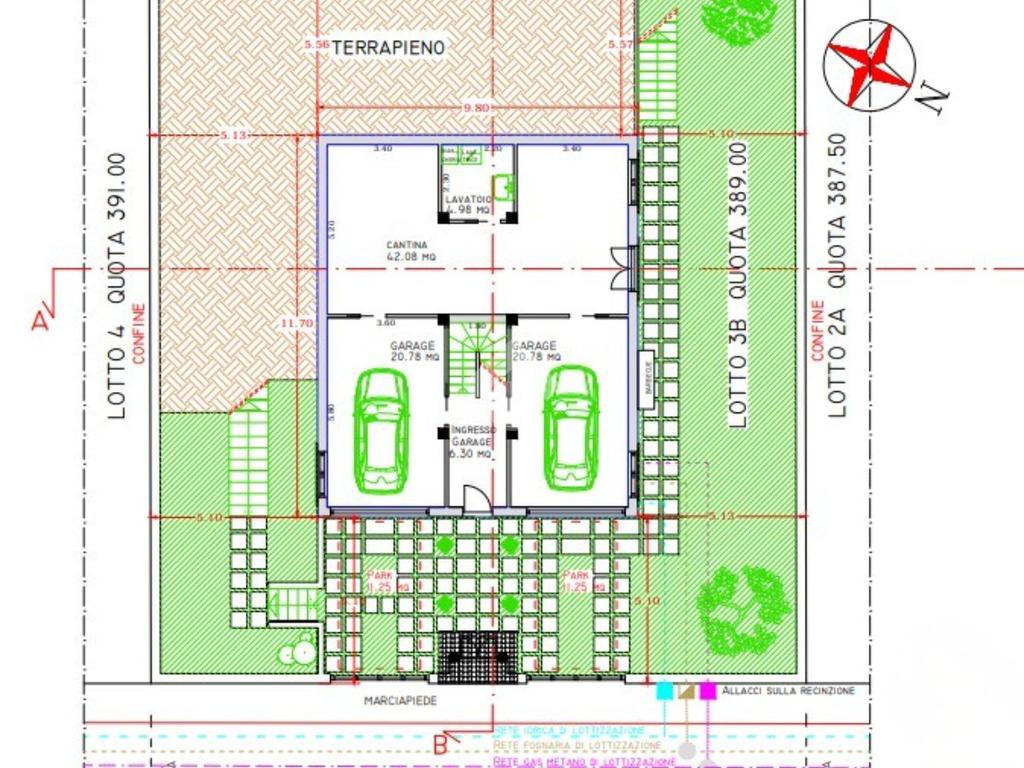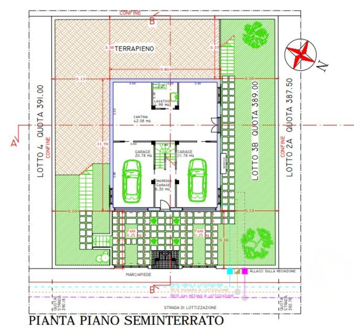 Al piano seminterrato, troveranno spazio un doppio garage, una cantina e un lavatoio, con una scala centrale che conduce al primo piano, dove si sviluppa la zona giorno con cucina e bagno, entrambi con accesso a portici e balconi per godere dell'esterno.