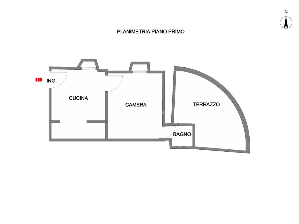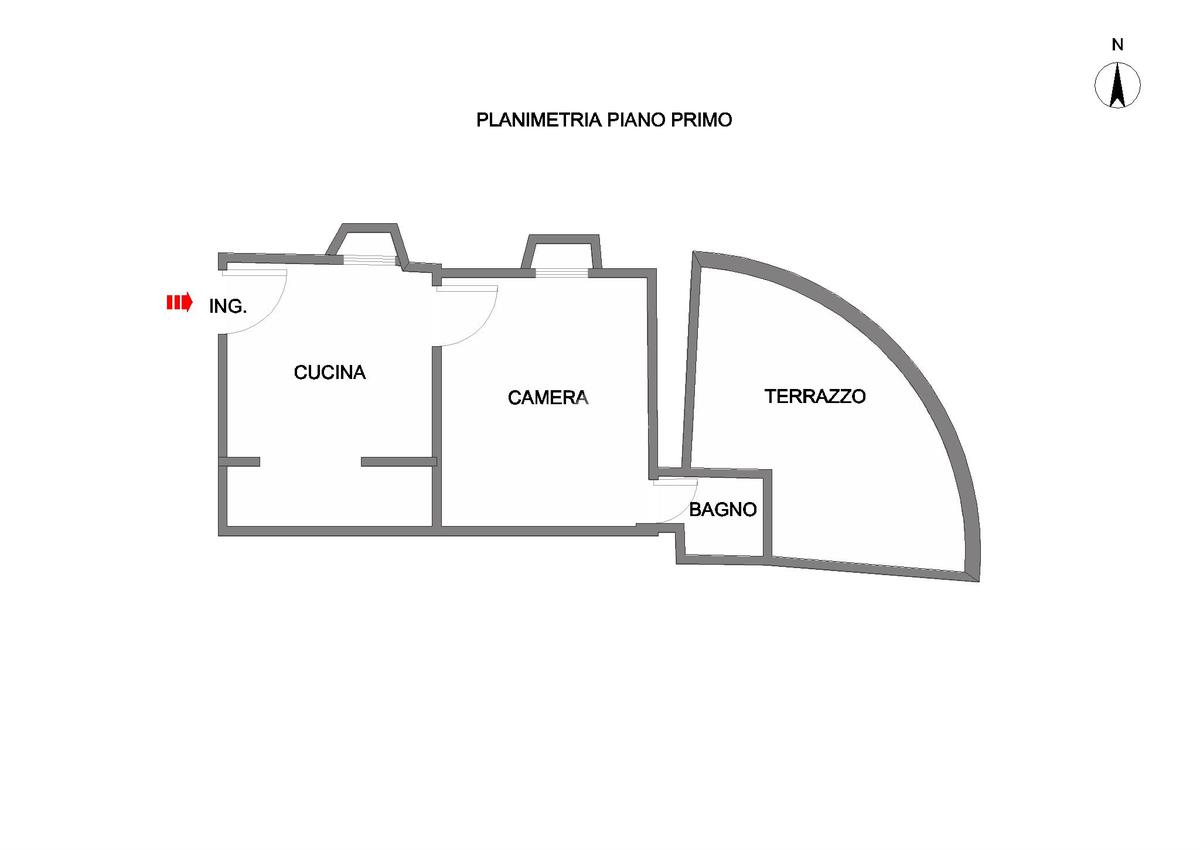 Salendo al primo piano si trova un piccolo appartamento composto da cucina abitabile, una camera da letto luminosa con accesso a un’ampia terrazza angolare e un bagno con doccia.