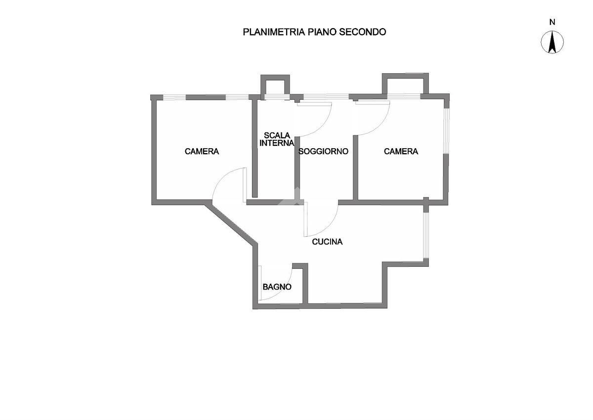 Il secondo piano ospita un appartamento spazioso, caratterizzato da un soggiorno con camino, una cucina abitabile, una camera con balcone, un bagno con vasca e un’ulteriore ampia camera da letto.
