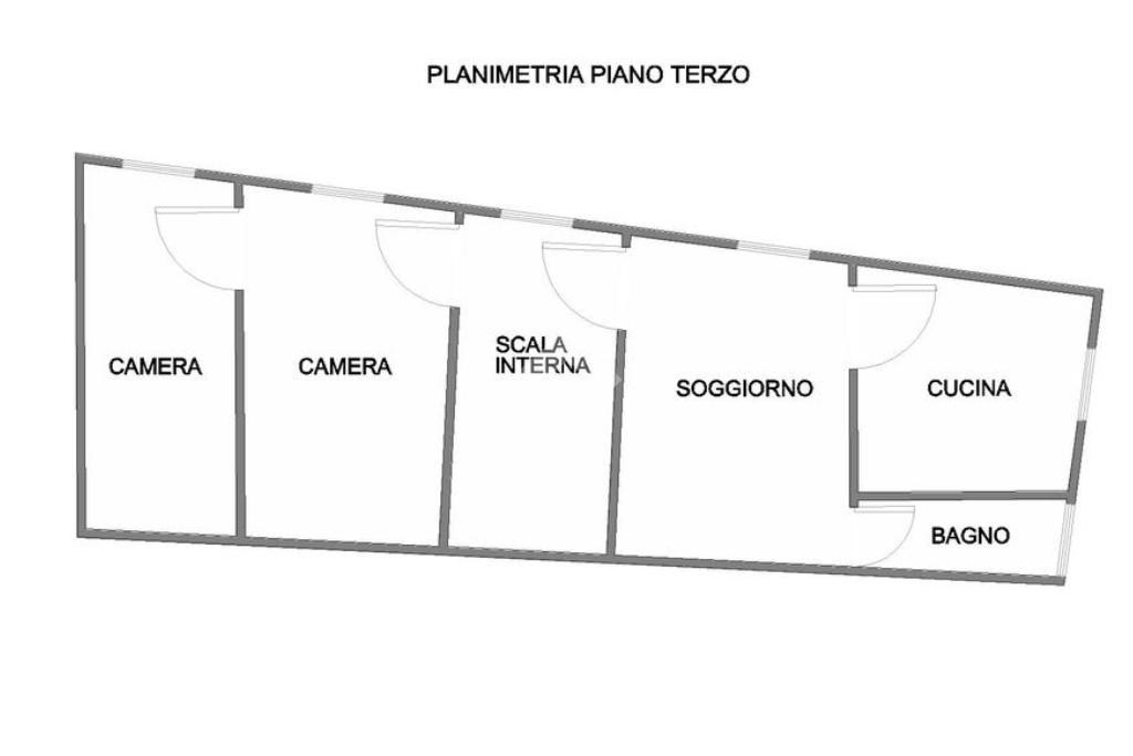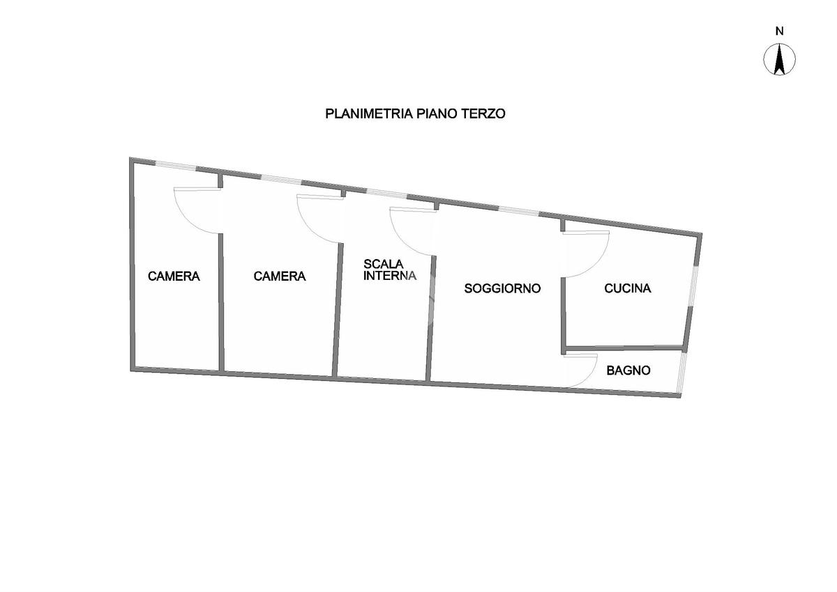 Al terzo piano è presente un terzo appartamento con soggiorno anch’esso dotato di camino, cucina abitabile con balcone, bagno con doccia e due camere da letto, offrendo ambienti comodi e ben distribuiti.