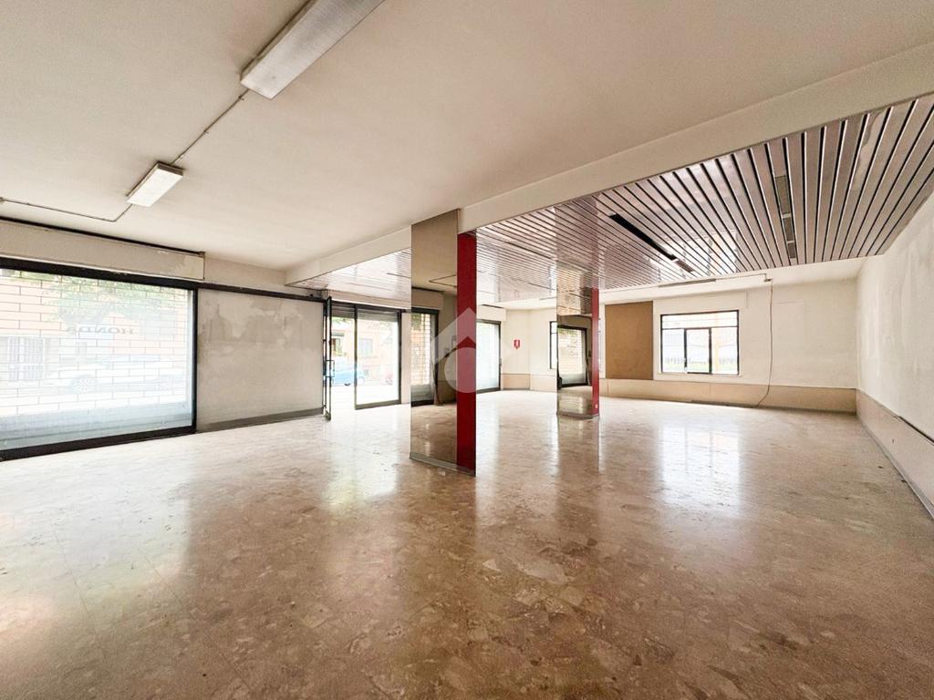 Sempre al piano terra, un magazzino di circa 115mq con accesso da strada offre ulteriore spazio per deposito o uso commerciale. Inoltre, un negozio di circa 150mq con tre vetrine fronte strada è l'ideale per attività commerciali o servizi, grazie alla sua posizione visibile e accessibile.