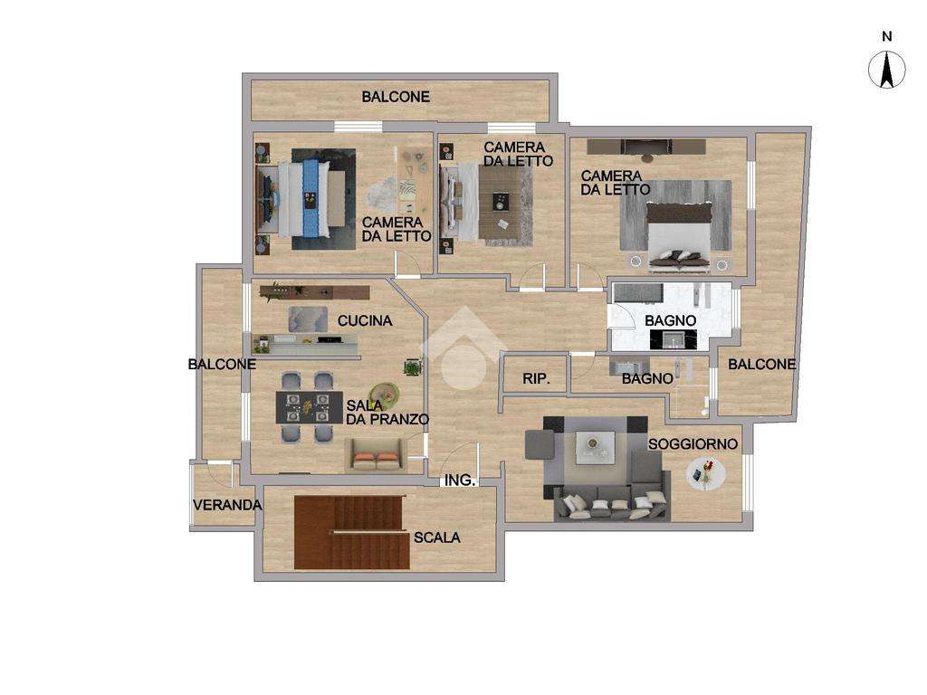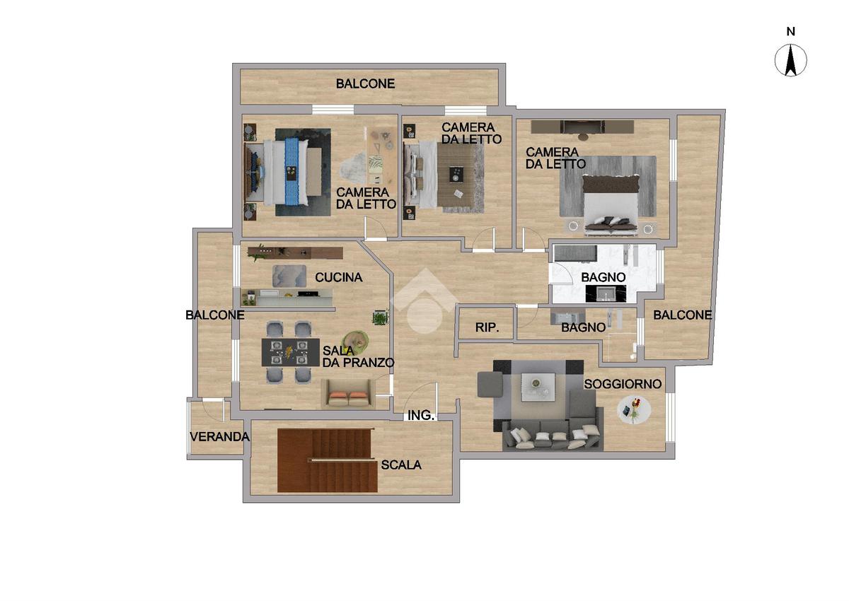 Le tre ampie camere da letto, tutte con uscita sul balcone, offrono spazi confortevoli e luminosi per riposare e rilassarsi. I due bagni comodi e finestrati, dotati di doccia, garantiscono comfort. Un ripostiglio offre ulteriore spazio per riporre oggetti e accessori.