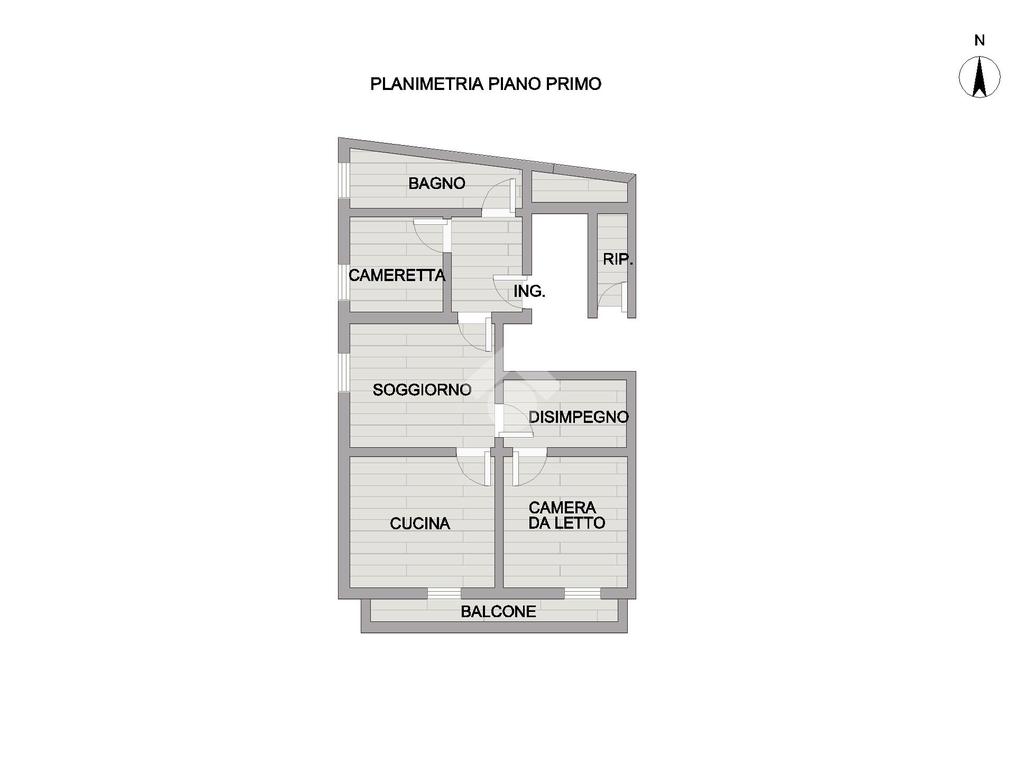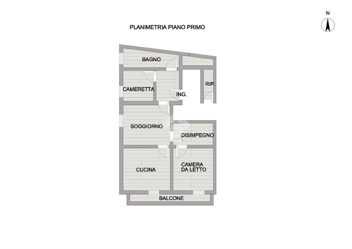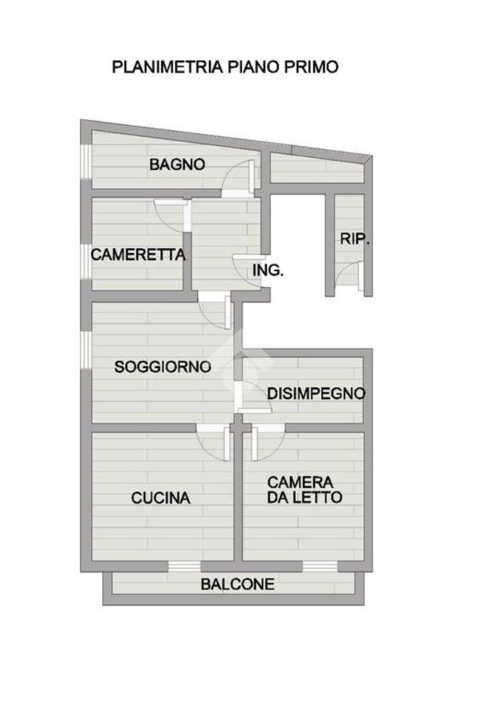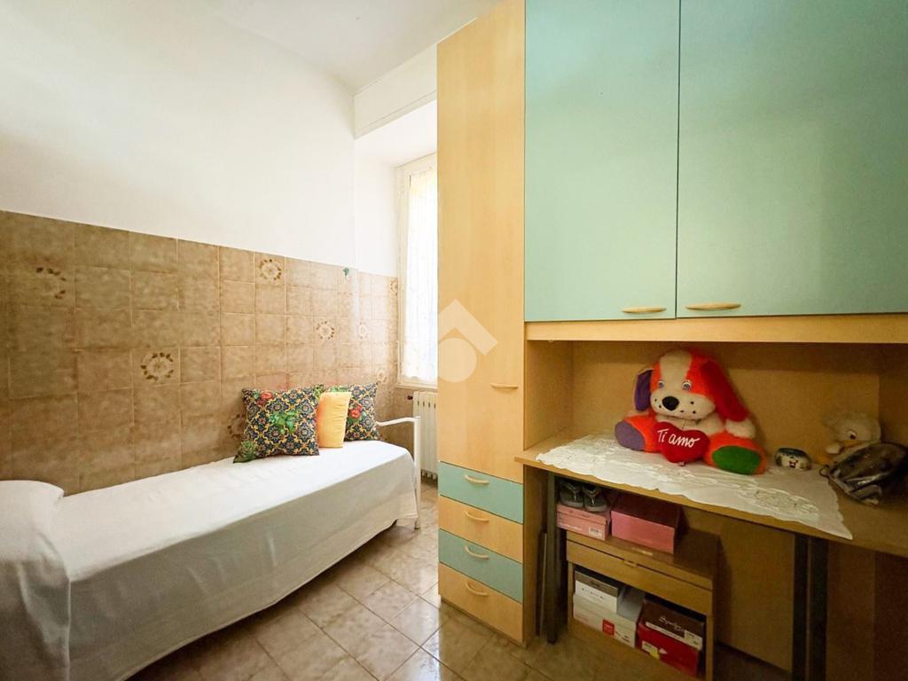 L'ingresso conduce a un disimpegno che distribuisce con praticità alla cameretta, al bagno finestrato con doccia e a un piccolo ripostiglio, tutto pensato per ottimizzare gli spazi.