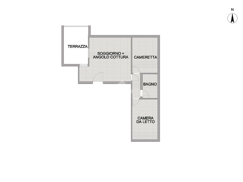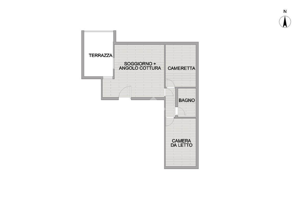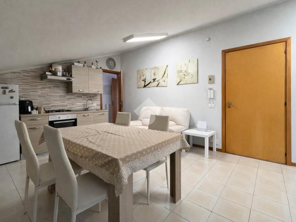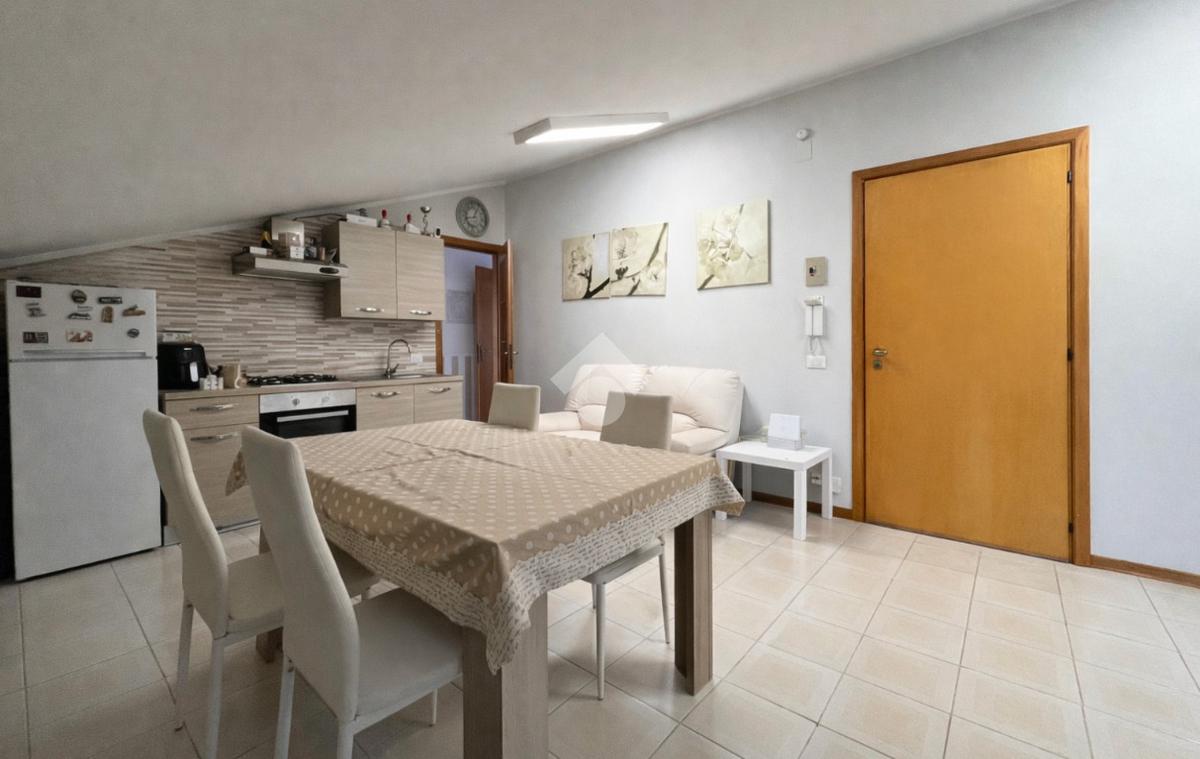 L’ingresso si apre su un luminoso soggiorno con angolo cottura, uno spazio accogliente e ben organizzato che conduce direttamente a un terrazzino pavimentato e vivibile, perfetto per momenti di relax all’aperto o per cene in compagnia.