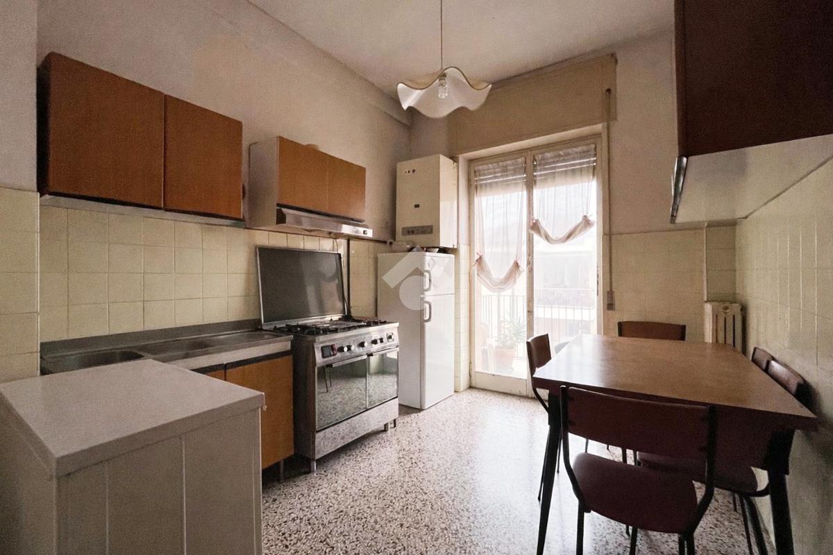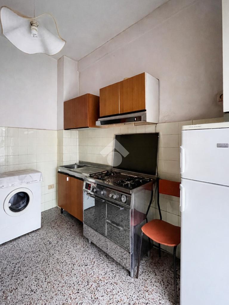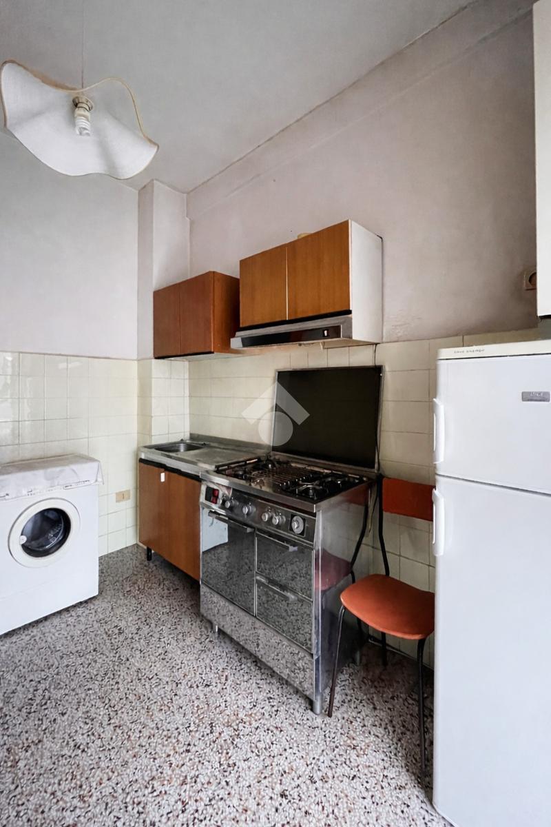 L'immobile accoglie con un soggiorno luminoso con accesso al balcone, affiancato da una cucina abitabile con uscita su un secondo piccolo balcone.