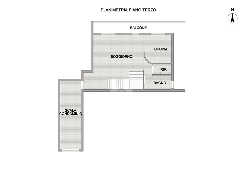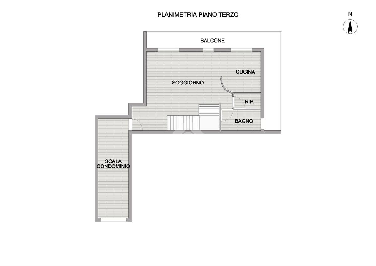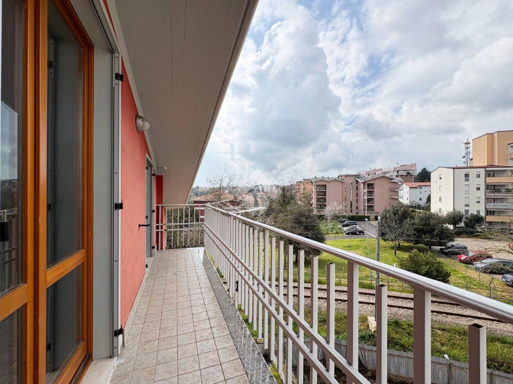 L’ingresso si apre su un ampio e luminoso soggiorno valorizzato da un raffinato controsoffitto, affiancato da una cucina abitabile, un pratico ripostiglio e un bagno con doccia; tutti gli ambienti della zona giorno godono di accesso diretto al balcone perimetrale, che dona continuità e ariosità agli spazi.