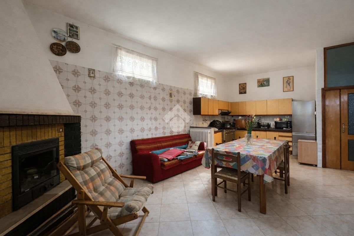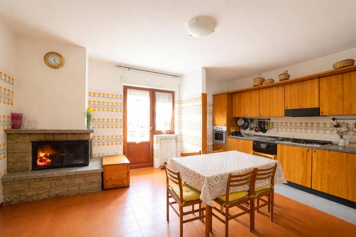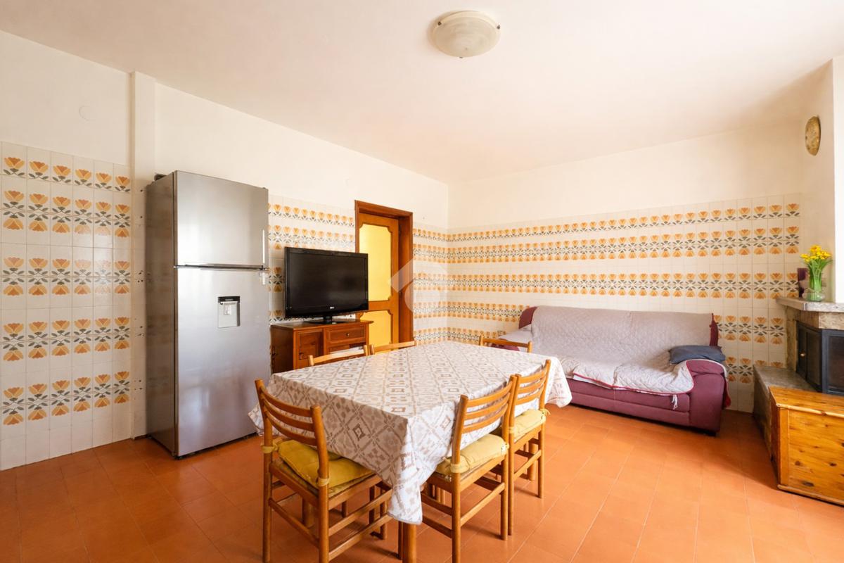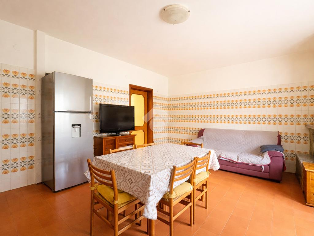 L’ingresso avviene attraverso un comodo portico comune che conduce all’abitazione, composta da un luminoso soggiorno con accesso diretto agli spazi esterni, una cucina abitabile arricchita da camino, due ampie camere matrimoniali, una cameretta e un bagno ristrutturato, finestrato e dotato di doccia.