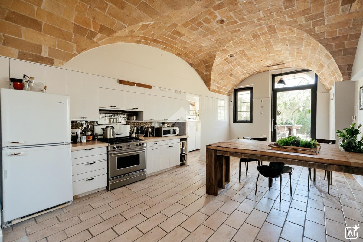 L'immobile, di 81 mq, è stato ristrutturato mantenendo lo stile rustico originale, con suggestive volte a crociera in mattone e pavimenti in cotto che conferiscono un'atmosfera accogliente e caratteristica.