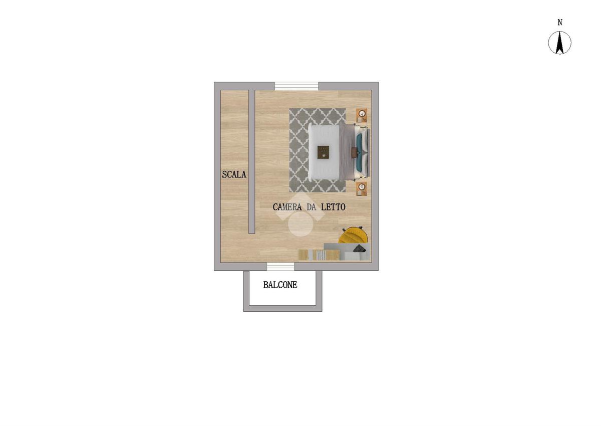 Al piano secondo una terza camera con balcone offre uno spazio aggiuntivo versatile.