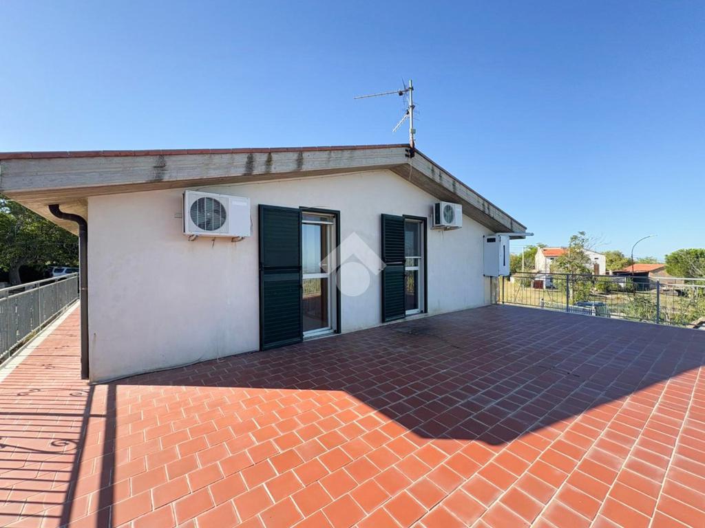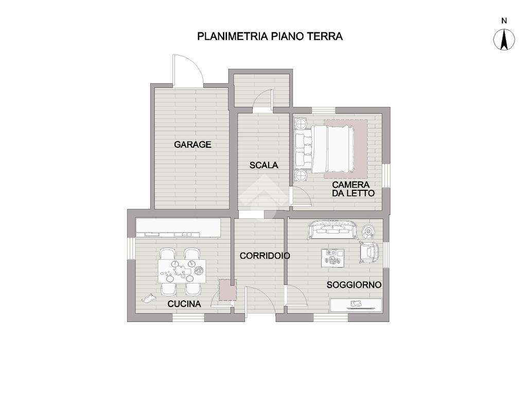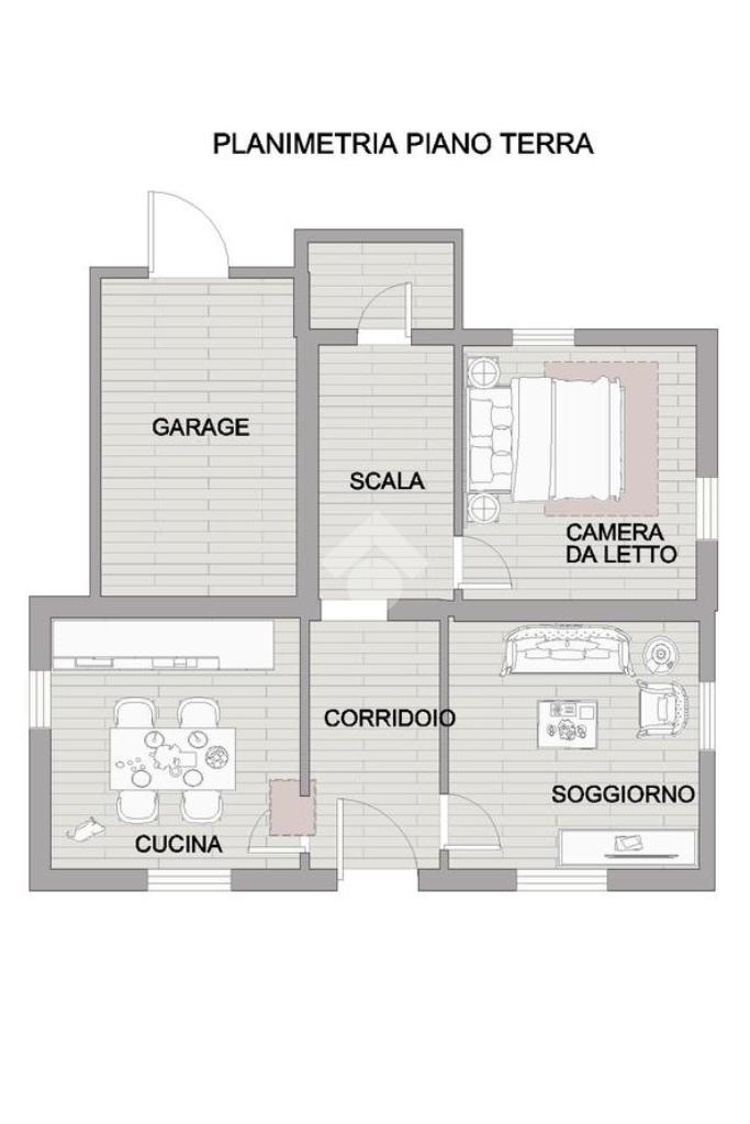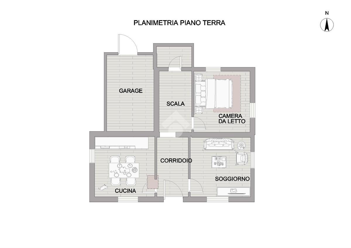 Al piano terra, il garage offre spazio per le vetture, mentre la cucina abitabile con camino e l'ampio soggiorno sono i luoghi ideali per trascorrere momenti di relax e convivialità. Il bagno di servizio e la camera da adibire a proprio piacimento offrono ulteriore flessibilità, mentre l'ampio terrazzo coperto è perfetto per godere del clima mediterraneo.