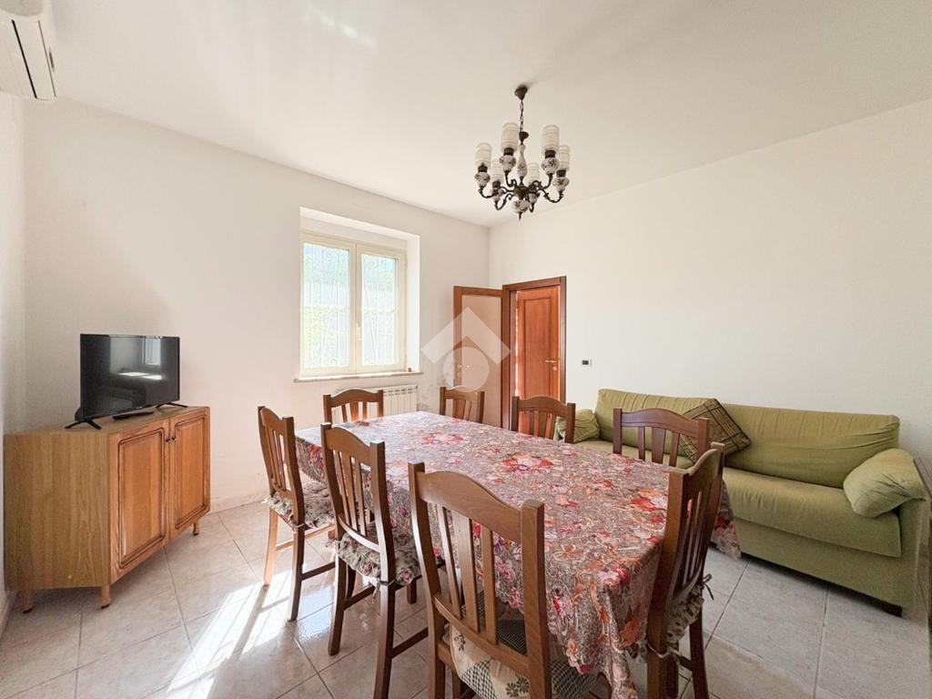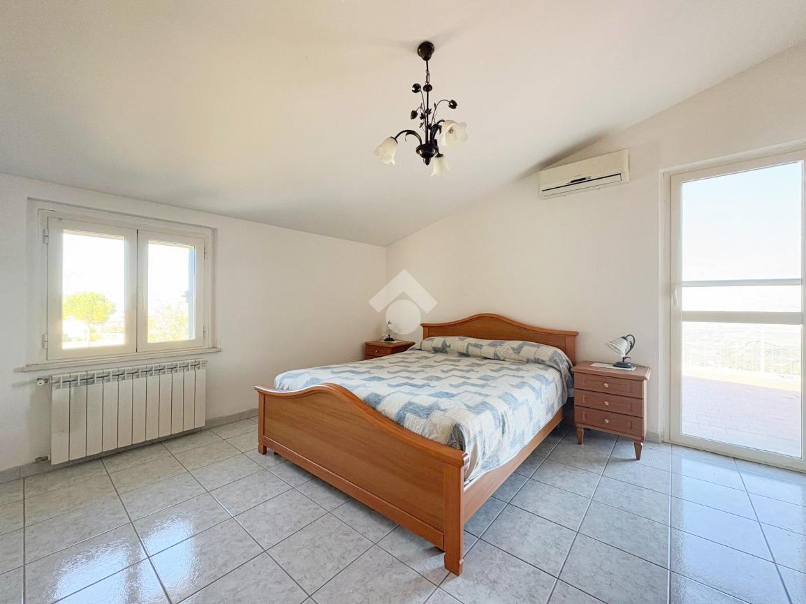Soluzione indipendente su due livelli vista mare con ampio deposito e terreno.