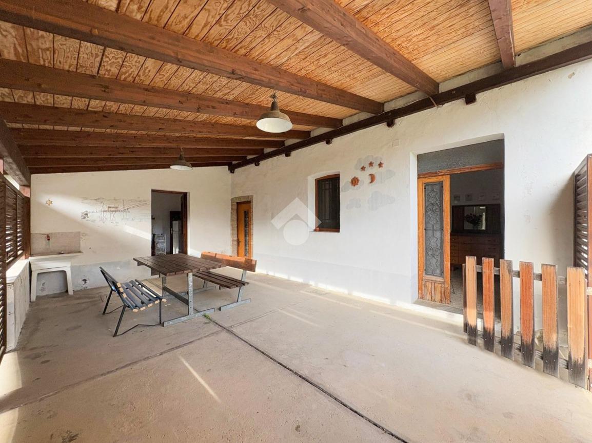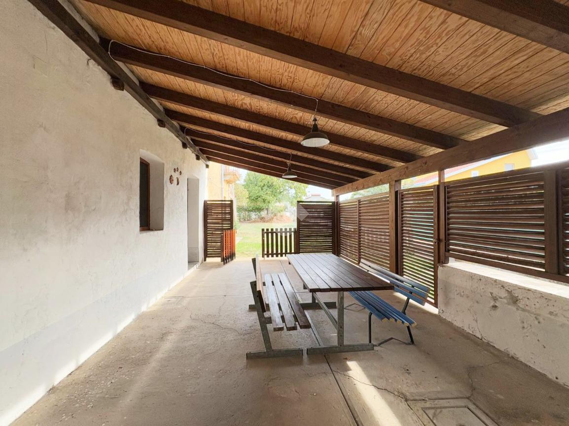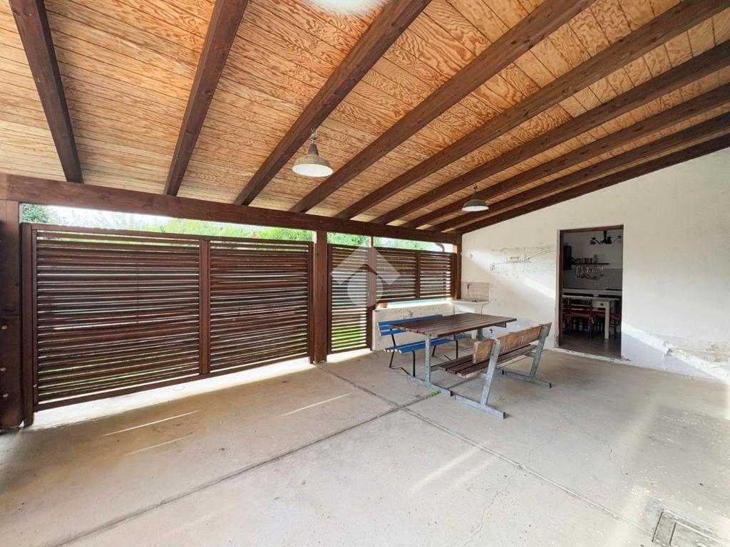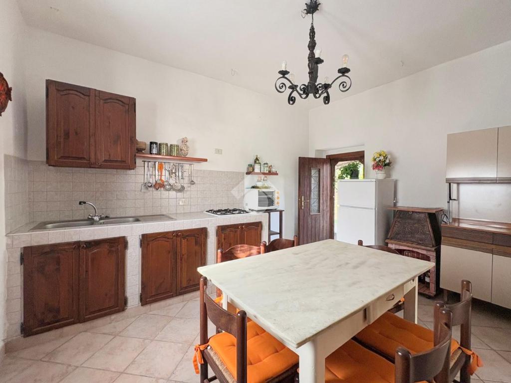Gli spazi esterni sono generosi e invitano a vivere all'aperto: aree porticate offrono riparo e comfort per momenti di relax, mentre il giardino si estende come un'oasi di verde, creando un contesto armonioso. L'ampia cucina in muratura con camino è il cuore dell'abitazione, un luogo caldo per preparare i pasti e condividere momenti conviviali.