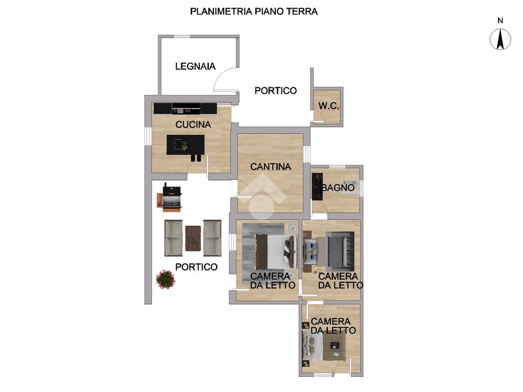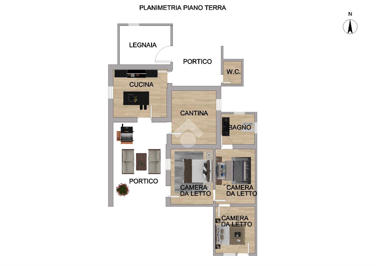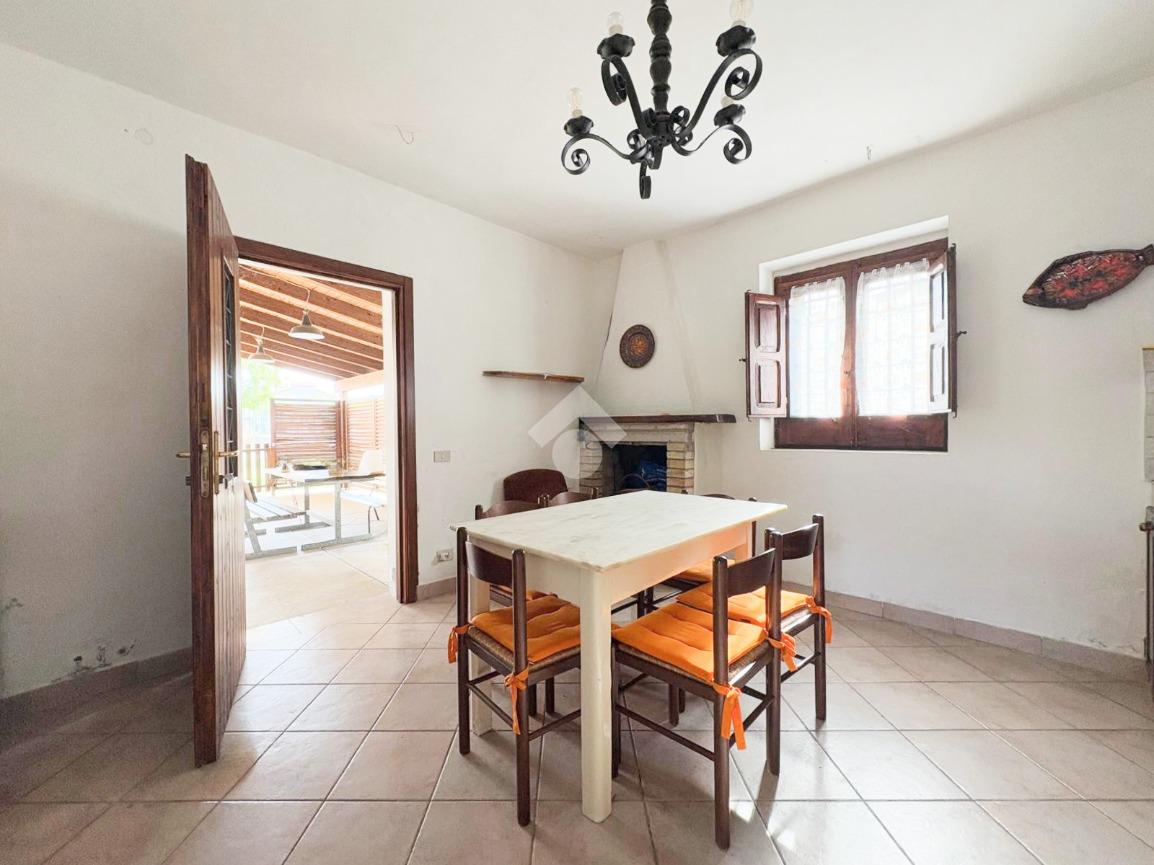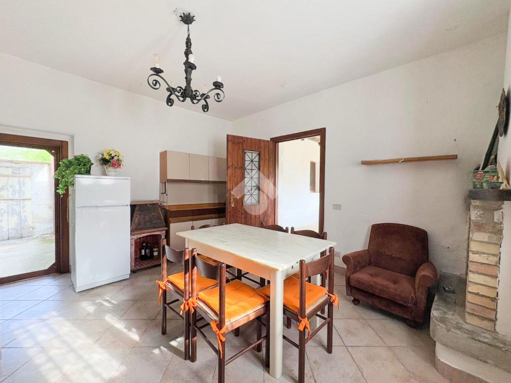 Gli spazi esterni sono generosi e invitano a vivere all'aperto: aree porticate offrono riparo e comfort per momenti di relax, mentre il giardino si estende come un'oasi di verde, creando un contesto armonioso. L'ampia cucina in muratura con camino è il cuore dell'abitazione, un luogo caldo per preparare i pasti e condividere momenti conviviali.