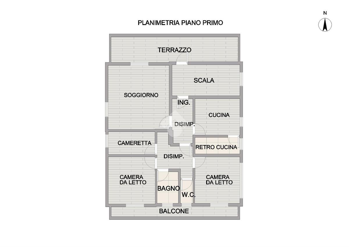 Al piano primo, necessario di alcuni lavori di ammodernamento, si accede a un appartamento con ingresso indipendente, caratterizzato da un ampio soggiorno con ampio terrazzo abitabile, cucina con retro cucina, due camere da letto con affaccio su balcone, bagno di servizio e bagno con vasca, oltre a una cameretta. Gli spazi offrono comfort, luminosità e una vista suggestiva sul giardino e il terreno agricolo.