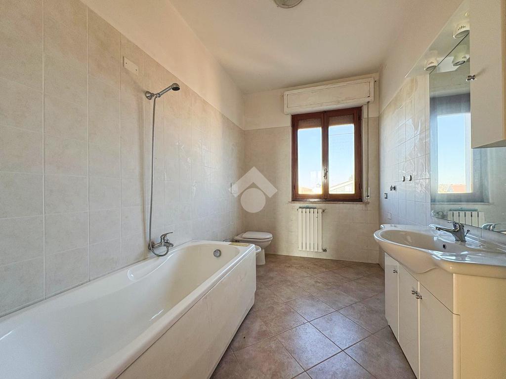 La zona notte comprende due ampie camere da letto ed una cameretta che offrono spazio sufficiente per una famiglia. Il bagno è dotato di vasca, garantendo comfort e praticità.