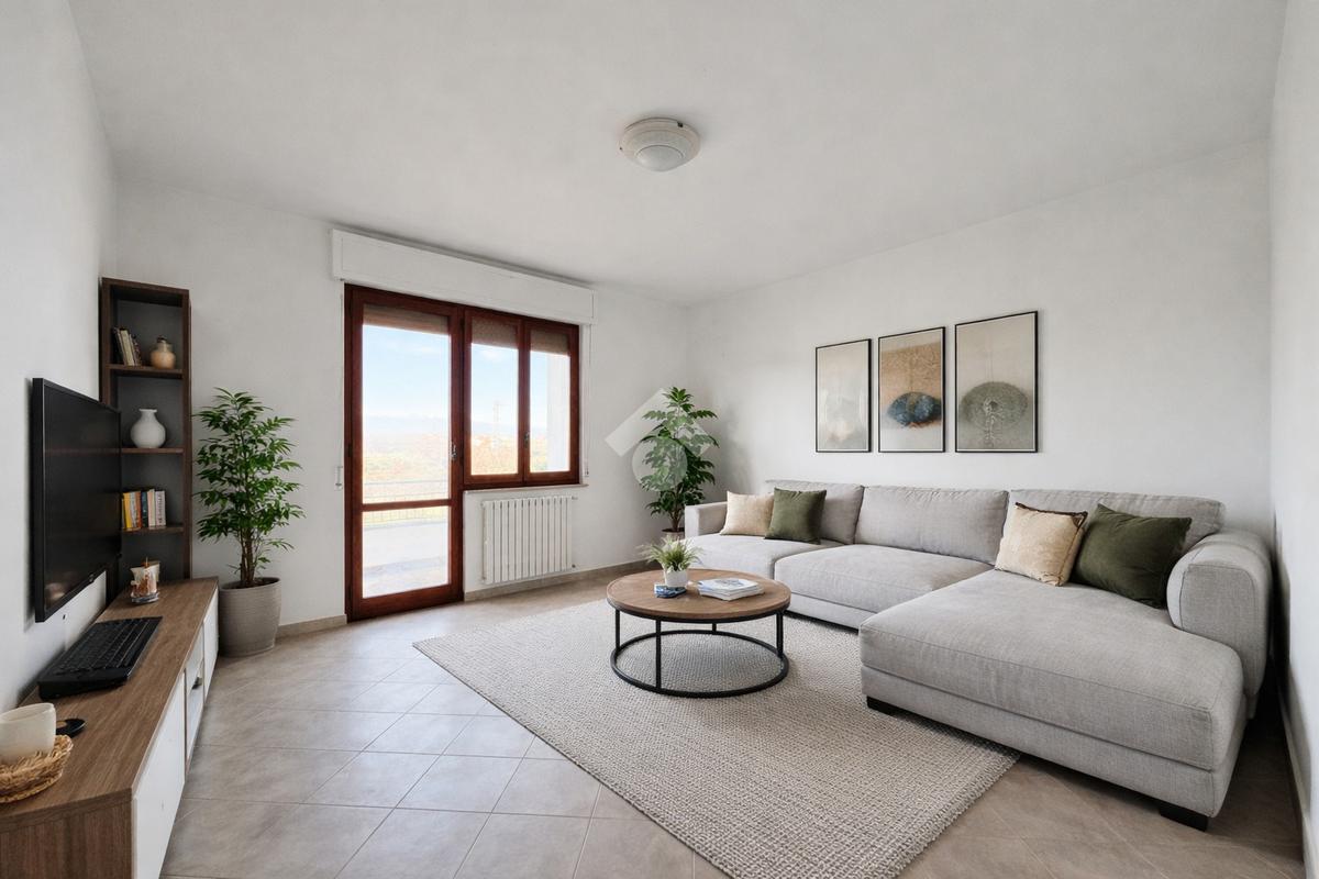 Situato al piano secondo privo di ascensore, l'abitazione presenta una cucina accogliente dotata di camino con accesso ad un balcone, ideale per momenti conviviali. L'ampio soggiorno anch'esso con balcone, è caratterizzato da una luminosità naturale e rappresenta il cuore della casa perfetto per il relax quotidiano.