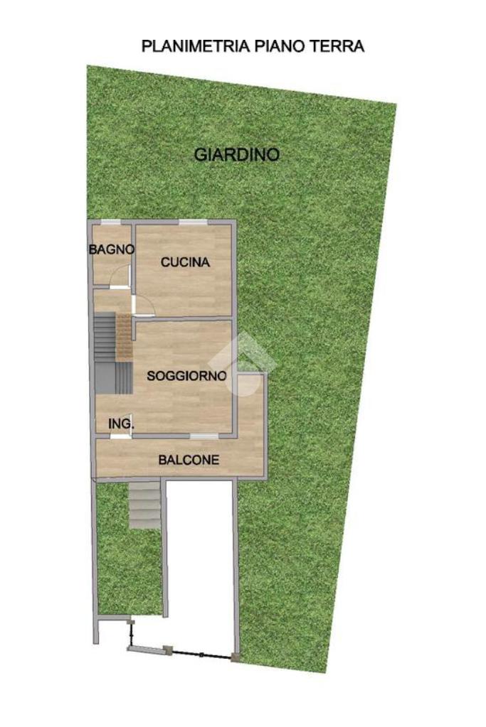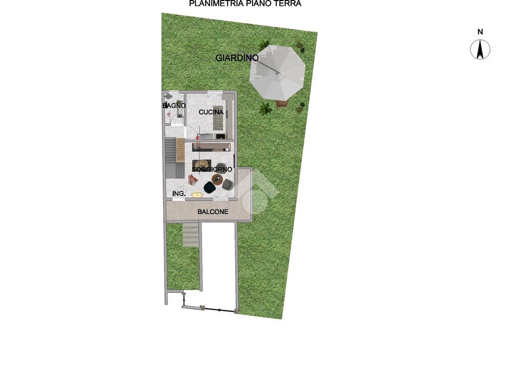 Al piano seminterrato si trova un ampio garage pavimentato di circa 35 mq, perfetto anche come spazio multifunzionale, completo di zona lavanderia. Da qui, una comoda scala interna conduce al piano terra, dove si apre un luminoso soggiorno caratterizzato da una suggestiva parete decorativa in pietra e da un affaccio su balcone angolare che valorizza ulteriormente la luce naturale. La cucina abitabile in muratura, con sportelli e pensili in legno massello, unisce solidità e fascino tradizionale e offre accesso diretto al giardino, creando una piacevole continuità tra interno ed esterno. Completa il piano un bagno finestrato con doccia.