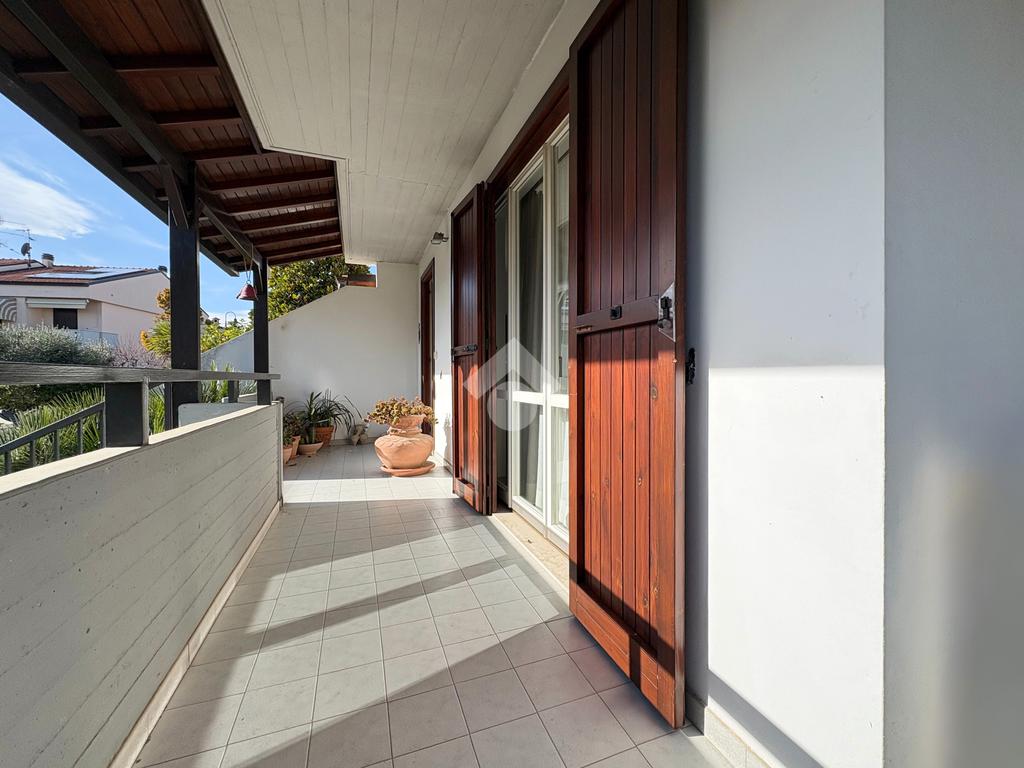 La casa si distingue per finiture armoniose e di qualità, con pavimentazione uniforme in tutti gli ambienti, finestre in legno laccato bianco con vetro termico e persiane in legno che conferiscono eleganza e ottimo isolamento.