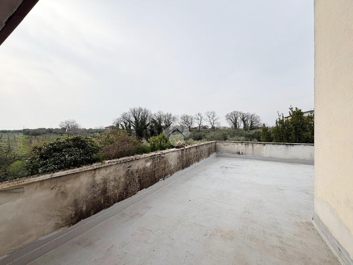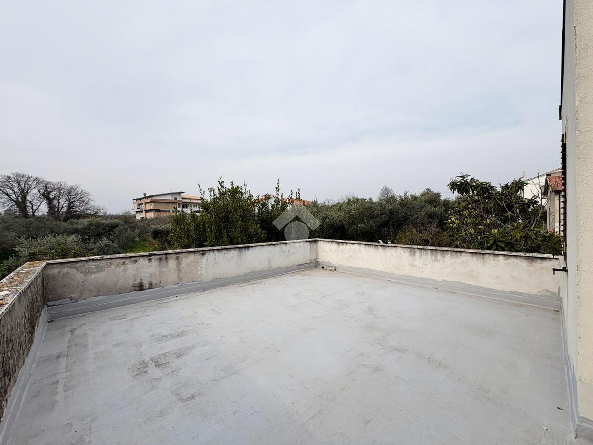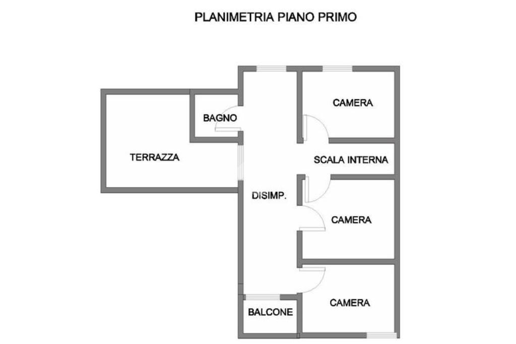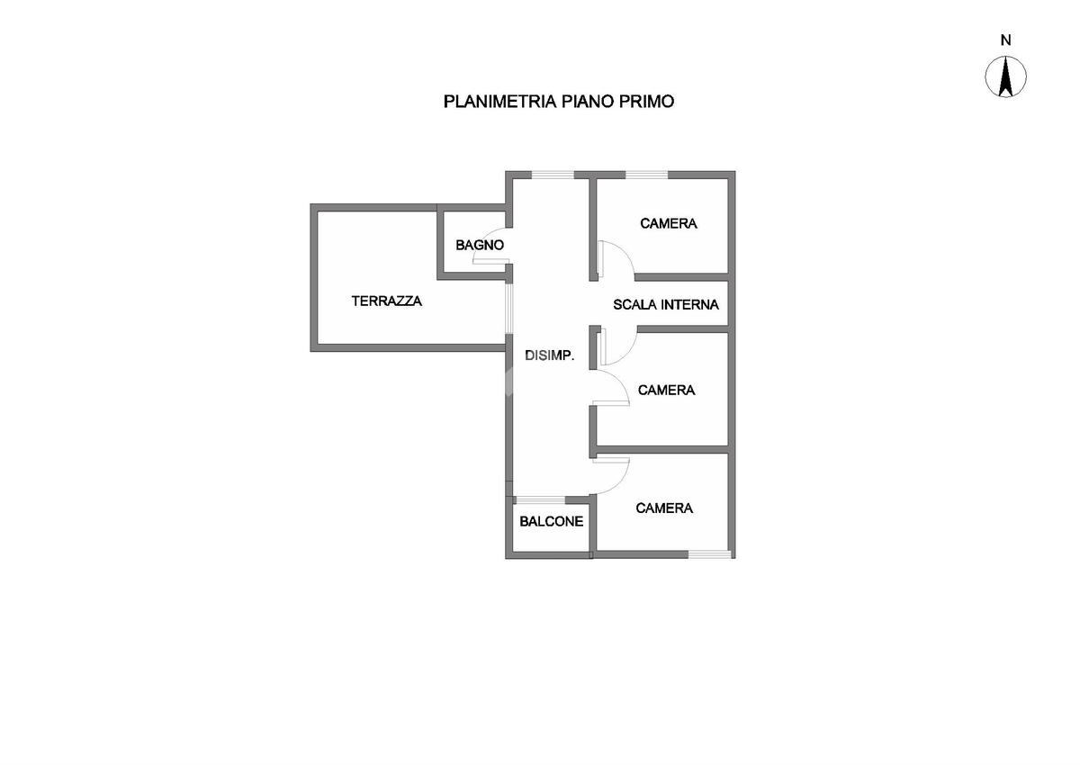 La scala interna conduce alla zona notte al primo piano, dove si trovano tre ampie camere da letto, un bagno finestrato con vasca e una terrazza spaziosa, perfetta per godere della vista e del sole.