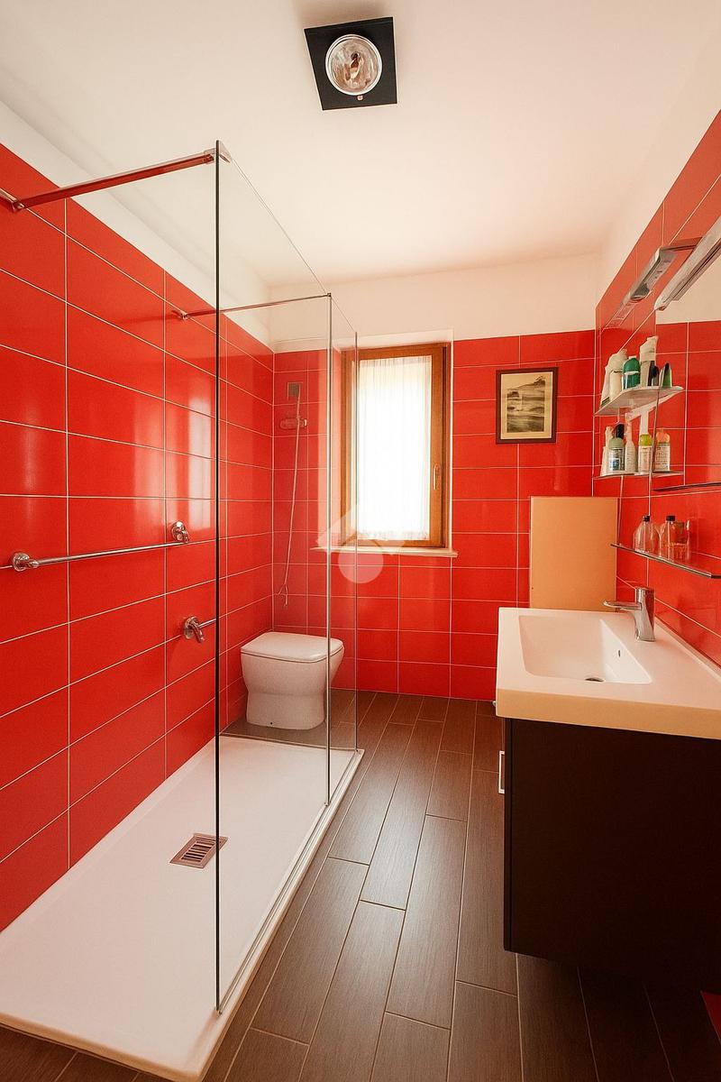 Al piano seminterrato, l'ampia taverna in stile rustico con camino e ingresso indipendente è uno spazio suggestivo e accogliente, perfetto per rilassarsi e trascorrere momenti gradevoli. Il bagno con doccia finestrato offre funzionalità.